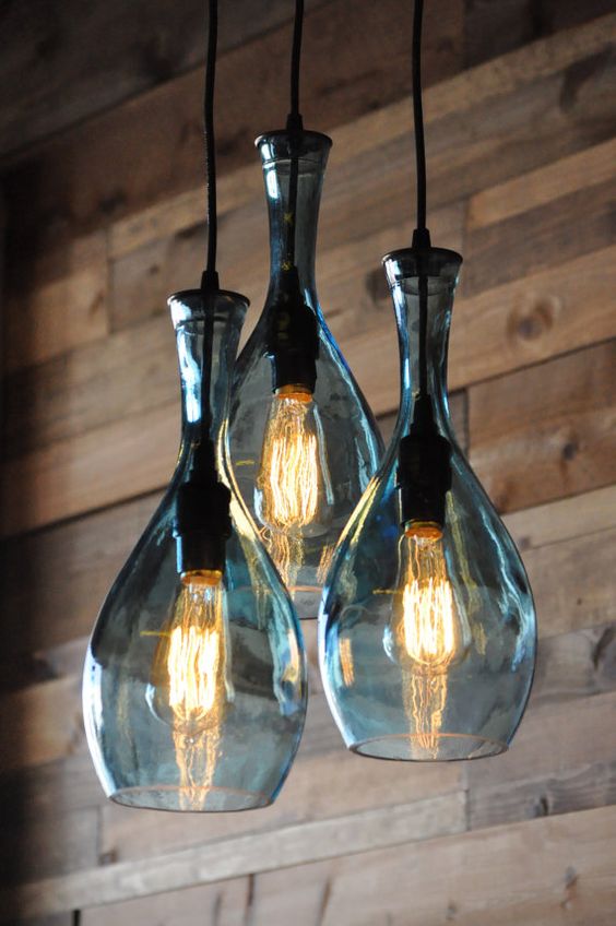As garrafas podem ser perfeitamente aproveitadas na decoração. Como vaso de planta, adorno, luminária de teto ou abajur. Uma forma de usá-las como peças decorativas é reunindo varias garrafas no mesmo tom, com formatos e tamanhos diferentes. Elas ficam super charmosas num aparador ou estante. E em algumas delas ainda podem ser colocadas flores naturais com água. Assim, alem de reaproveitar objetos usados, trazemos personalidade ao ambiente.
